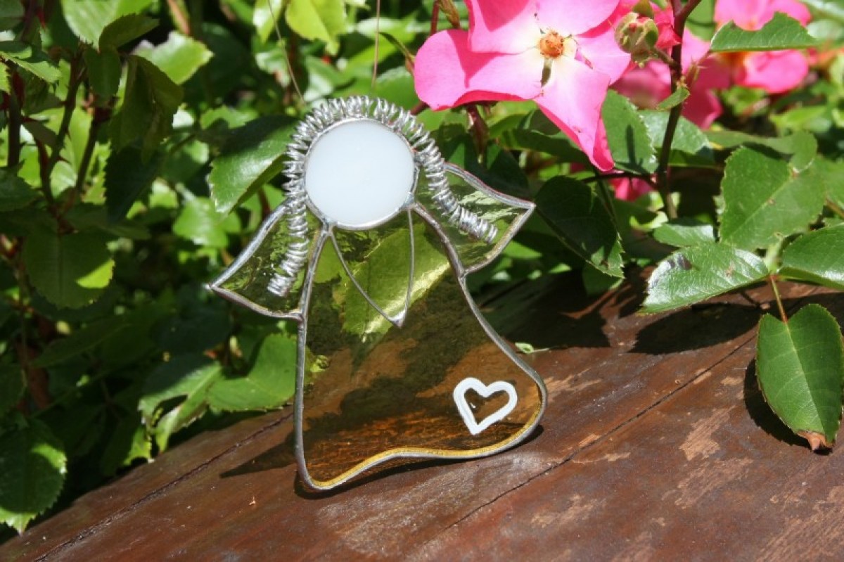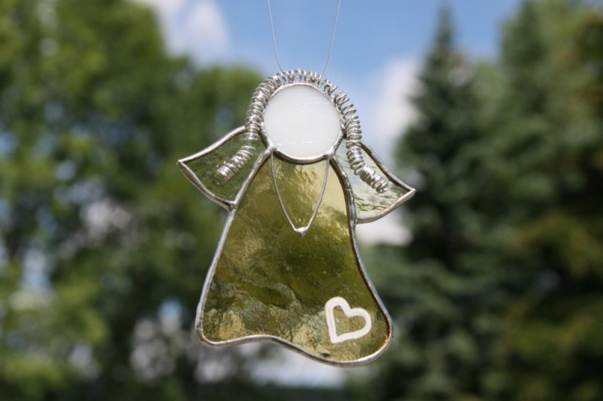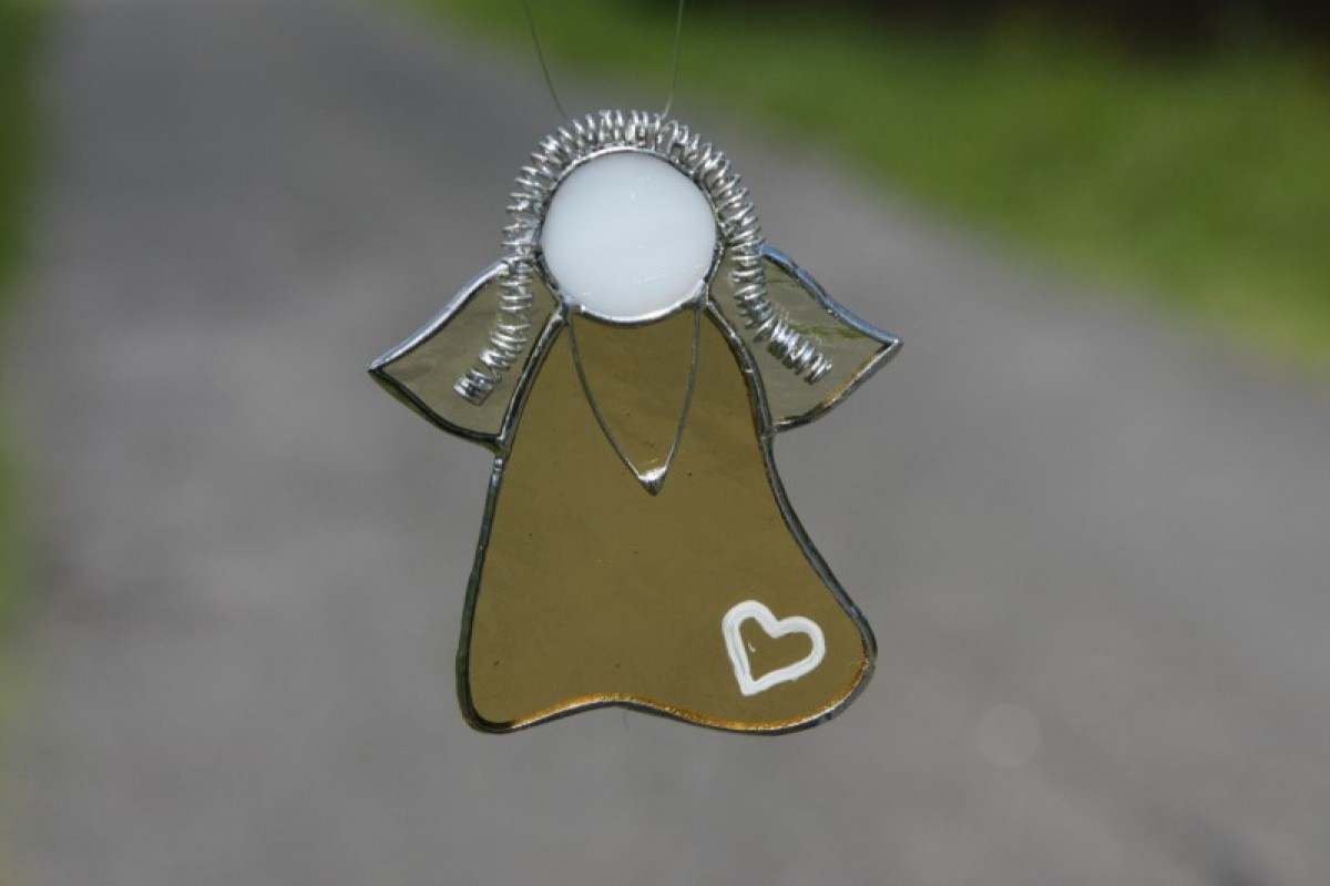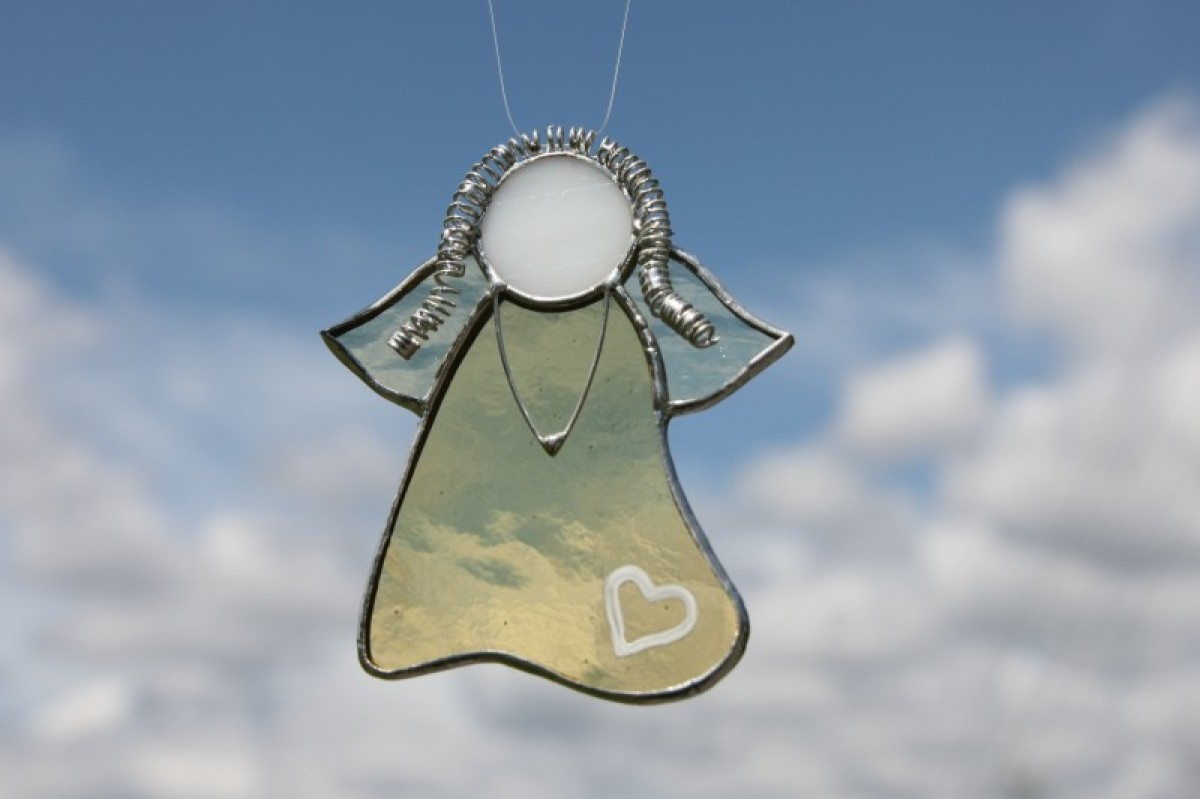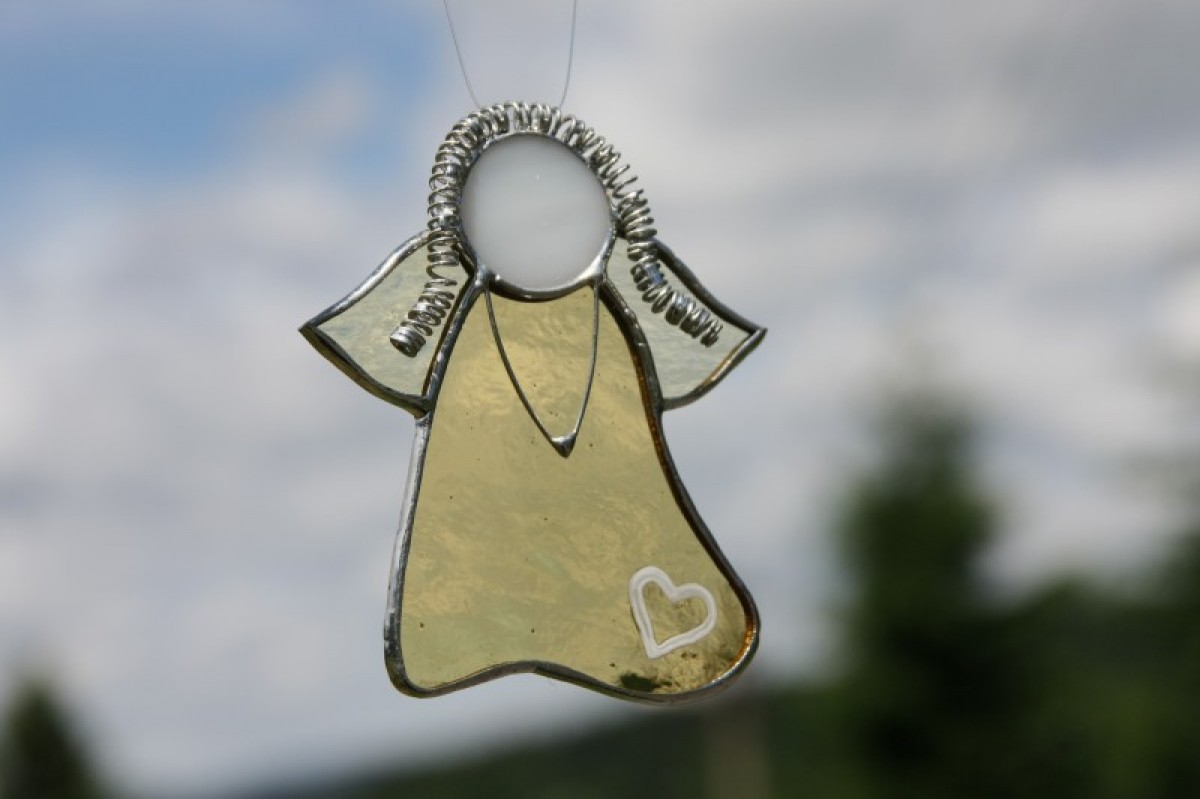 Anděl je zhotoven tiffany technikou z katedrálního skla a je opatřen antioxidačním nátěrem.