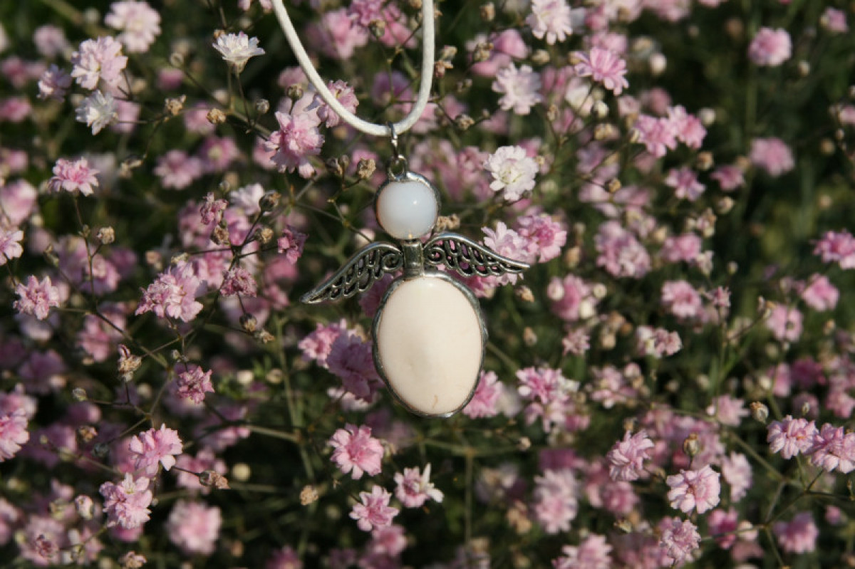 Celková délka včetně bílé povoskované šňůrky - 24-26 cm, výška samotného šperku - 4 cm.